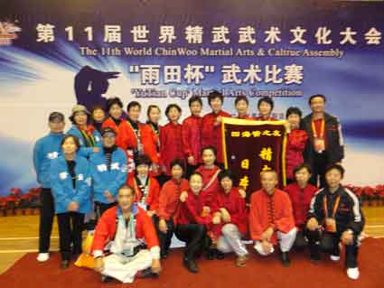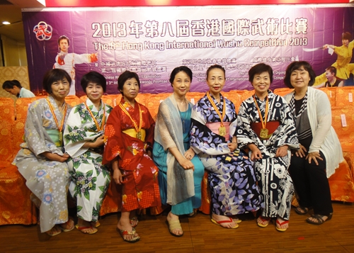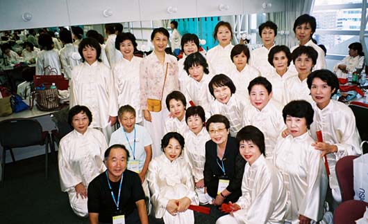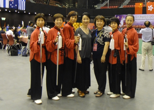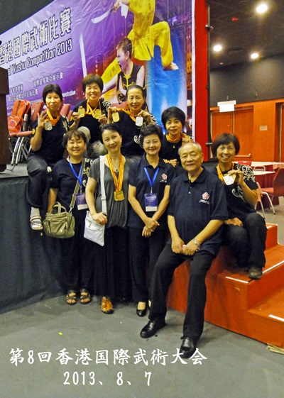 2007年香港世界武術大会太極功夫扇 世界各国の華僑が交流する大会が神戸大阪で開催され33カ国 3600人が参加しました。閉幕式がグランドキューブ大阪『国際会議場』で行われ、私たちはその舞台で24式太極拳と太極カンフー扇を披露しました。 開幕式に太極カンフー扇を披露しました。試合は42式太極拳に出ました。メンバーの一人は銅メダルに輝きました。世界各国の精武会のメンバーと交流を持つことができました。 初めての発表会を和歌山市民会館でしました。 2010年11月 第11回世界精武会交流会 功力拳 個人 1、2位 2012年8月 胡葉丹老師は中国武術協会が主催した太極拳段位制試験に参加した 2013年8月 胡葉丹老師は普及会5人とともに中国武術協会が主催した太極拳段位制試験に参加した( 胡老師は太極拳六段資格試験、普及会の5人は太極拳四段資格試験) ◎2013年香港国際武術大会記念写真 昨年8月に大西恭子、井上としみ、安田啓美、高橋祥子、高橋豊子と会長胡叶丹六人が中国武協太極拳段位制試験に参加しました。