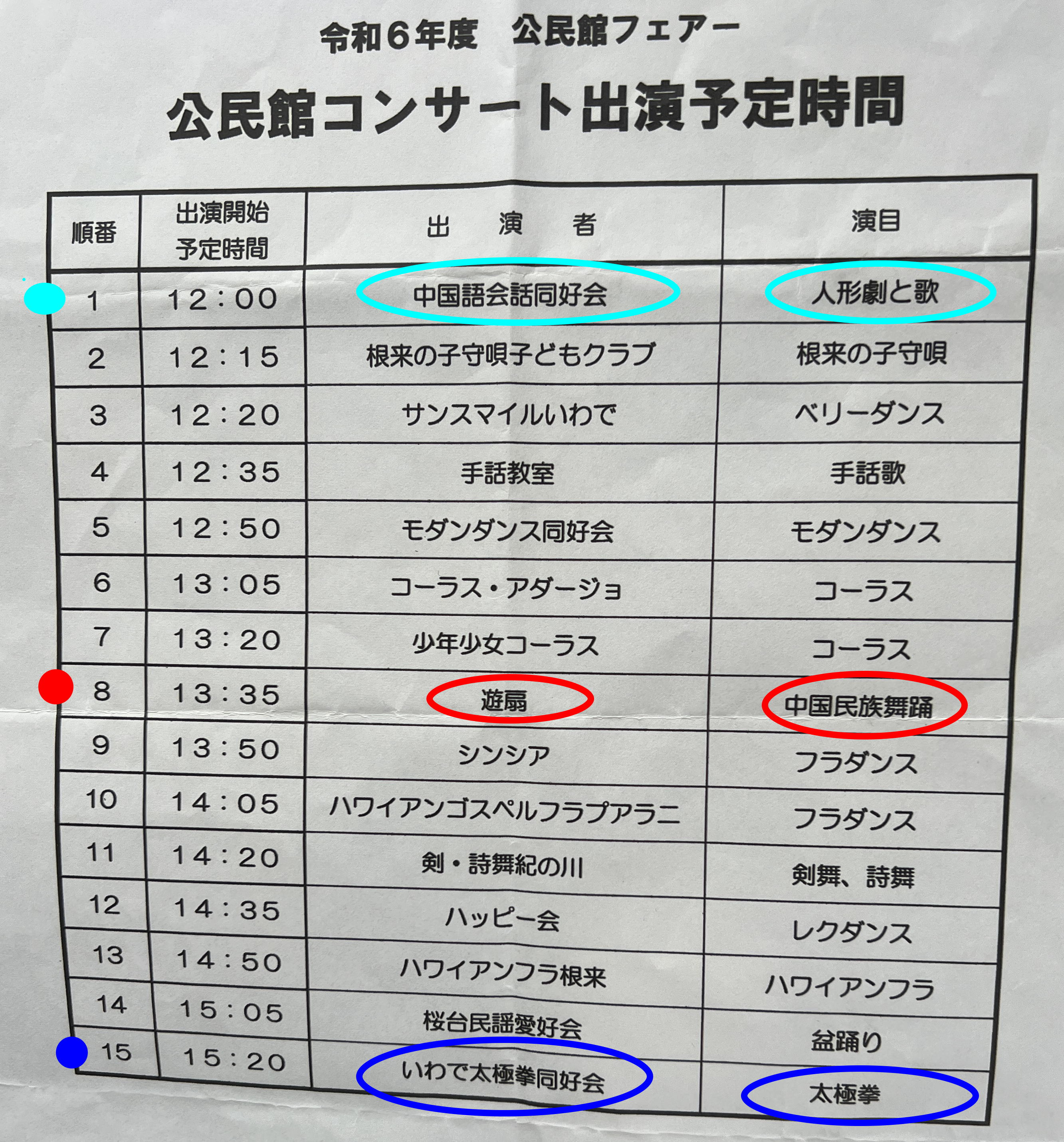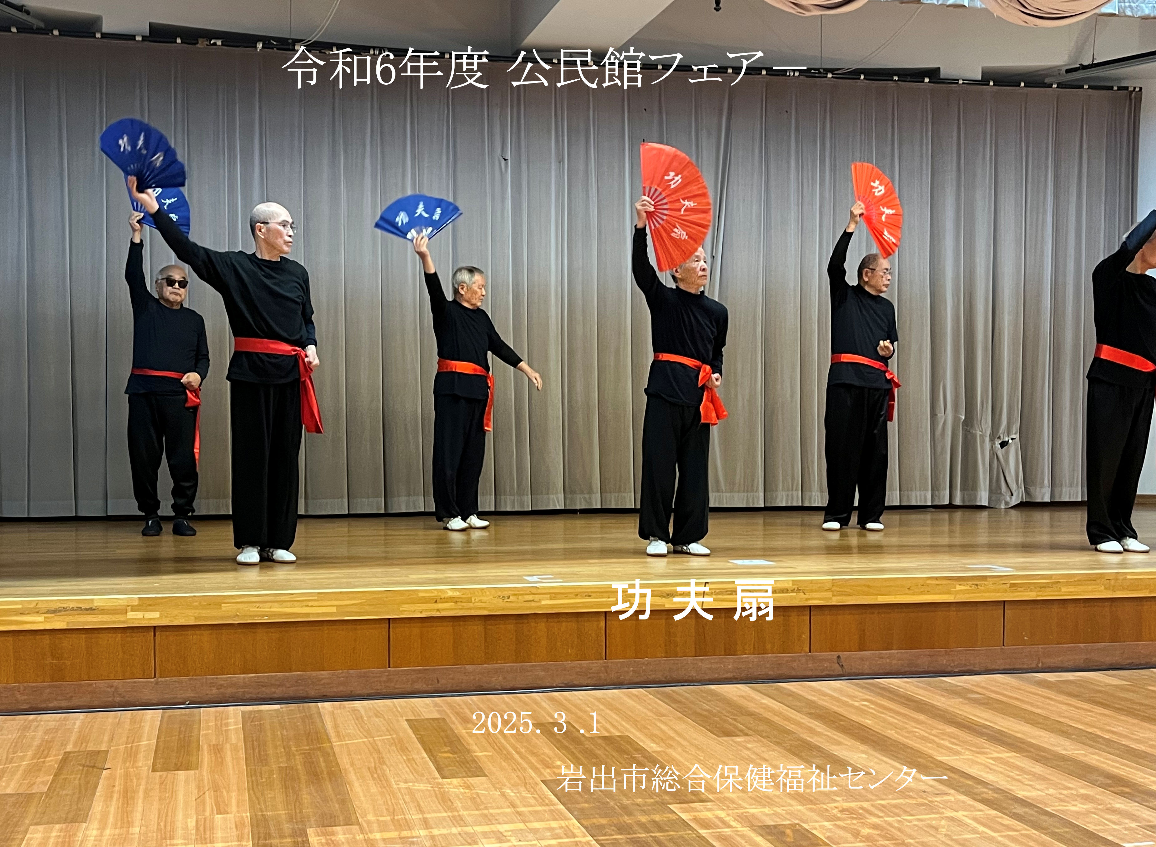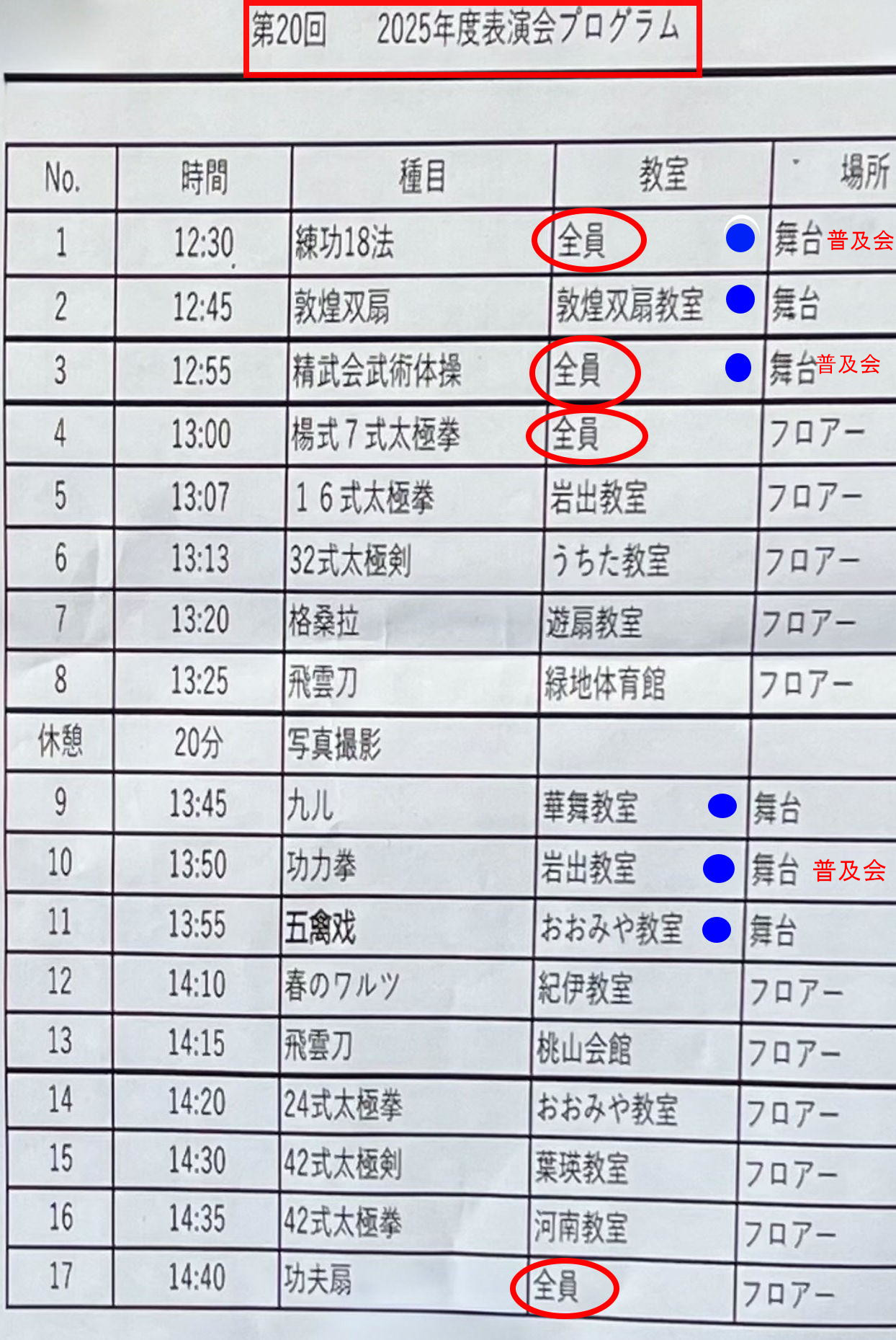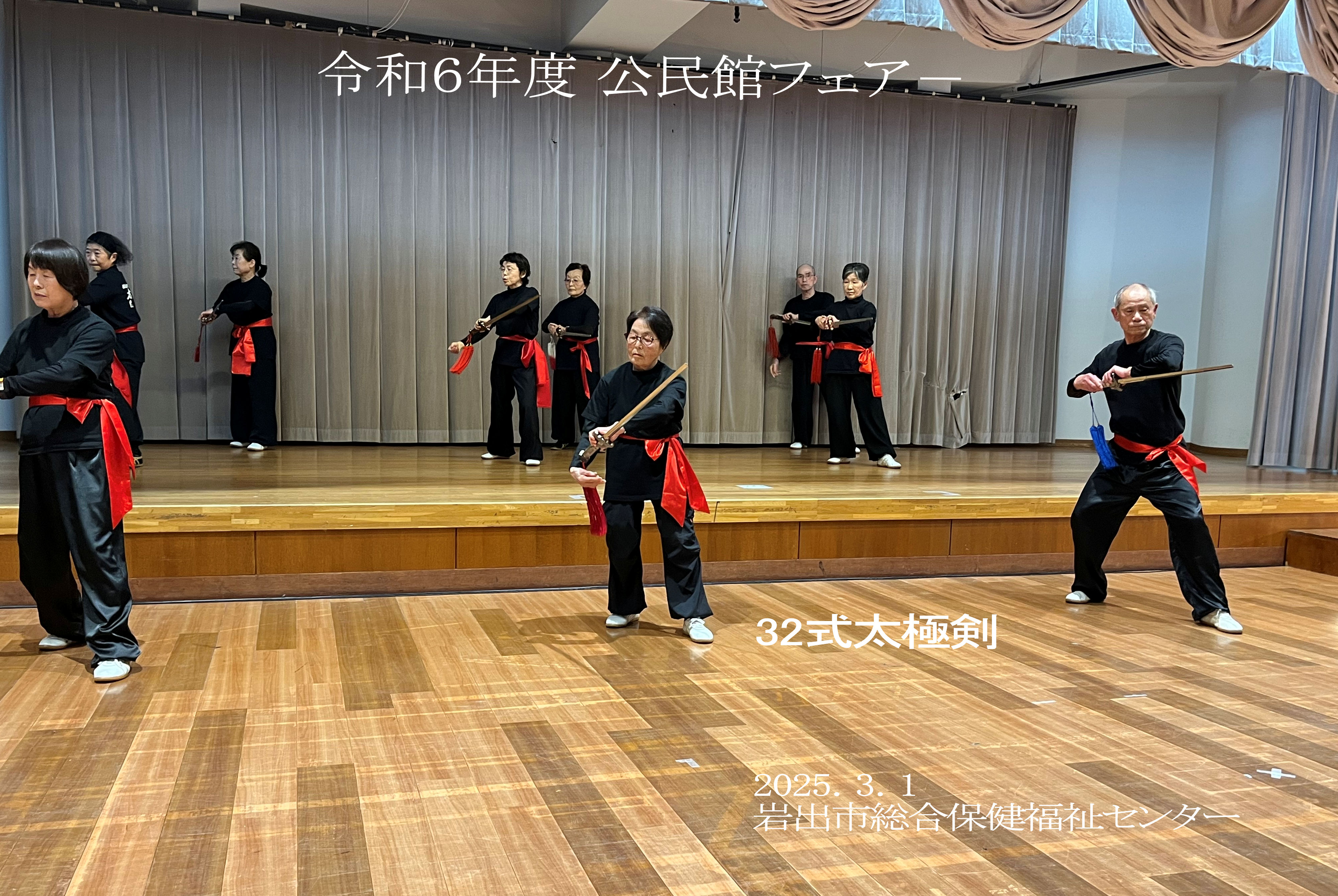 演武種目 = 功夫扇・ 32式剣・8式太極拳(出場者と会場の人皆で)